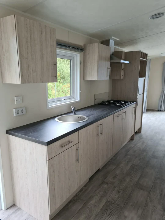 Mobil home gama alta Cuni 2-H modelo VIMBODÍ, un mobil home de gama alta perfectamente fabricado y acomodado para vivir, un modelo perfecto para disfrutar las vacaciones al aire libre en tu parcela o en el camping, siendo diseñado para ofrecer el máximo confort.