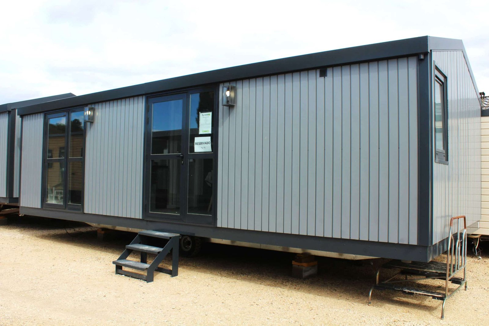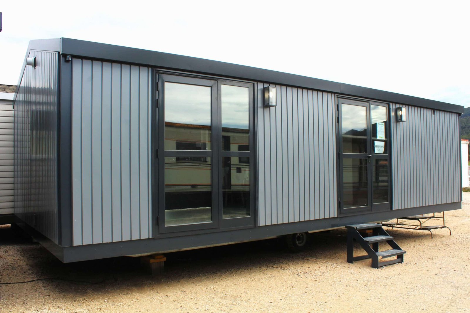 El revestimiento en la parte exterior no necesita mantenimiento, es de chapa galvanizada prelacada, con ángulos de aluminio y ventanas de color negro antrazita con persianas y estores enrollables, además de disponer de ruedas de alta resistencia. Dispone de un suelo de parquet, vigas de refuerzo en el techo con paneles térmicos y cámara de circulación de aire y con paredes de grosor resistentes con buen aislamiento térmico.