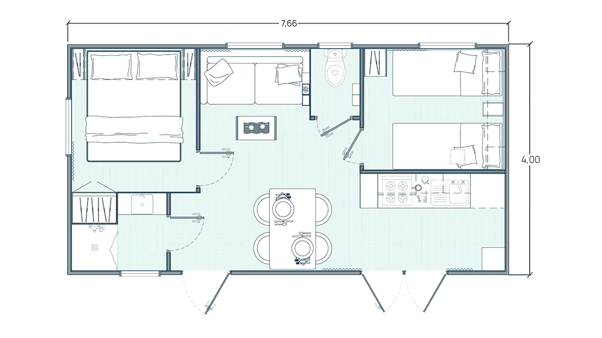 Dimensiones (LxAnxAl): 7,66m x 4,00m x 3m