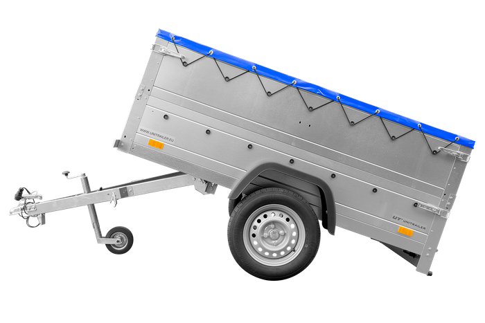 Además del hecho de que obtiene una superficie de transporte excepcionalmente grande, también ofrecemos extensiones de flancos con lona plana en su conjunto que protegerán su carga de todas las influencias atmosféricas. La rueda giratoria (también incluida en el juego) permite maniobrar mejor el remolque separado del gancho. La barra de tiro plegable le brinda la posibilidad de volcar el remolque de tal manera que pueda cargar y descargar su remolque mucho más rápido de lo habitual. Esta solución solo está disponible en remolques más avanzados, que a menudo cuestan mucho más que nuestro remolque en cuestión. Será, sobre todo, perfecto para reparaciones, transporte de muebles, madera, materiales de construcción, herramientas y todas las demás cosas que habías transportado en tu coche hasta ahora. Al usar las extensiones adicionales de la pared lateral y una lona plana, obtiene hasta 70 cm de altura de la superficie de transporte. También puede montar soportes laterales, dispositivos de fijación en el suelo, una red de fijación de carga o comprar una rueda de repuesto o calzos para ruedas. Adaptarás tu remolque a tus necesidades de una forma muy sencilla.