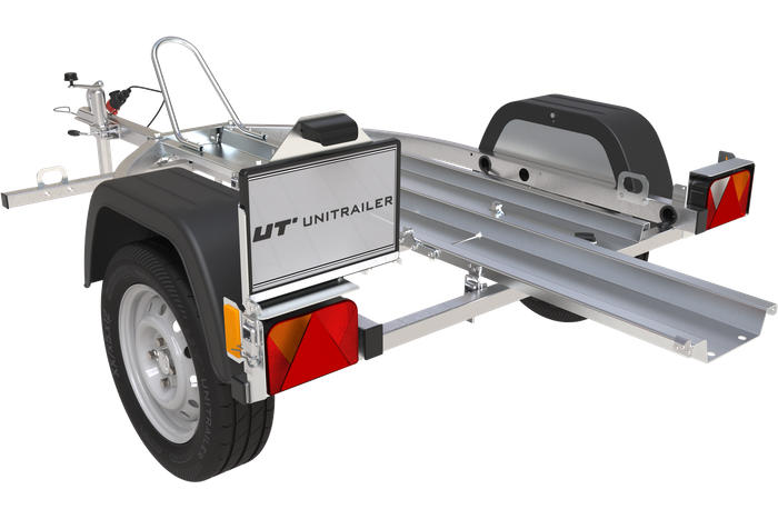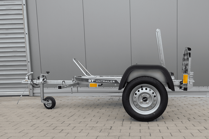 Pequeña motocicleta remolque para el transporte de una motocicleta. Nuestro UNITRAILER MOTO 1 remolque es un modelo práctico e ideal para el transporte de una motocicleta. Hemos desarrollado un remolque que permite que usted cargue y transporte de su motocicleta fácilmente.