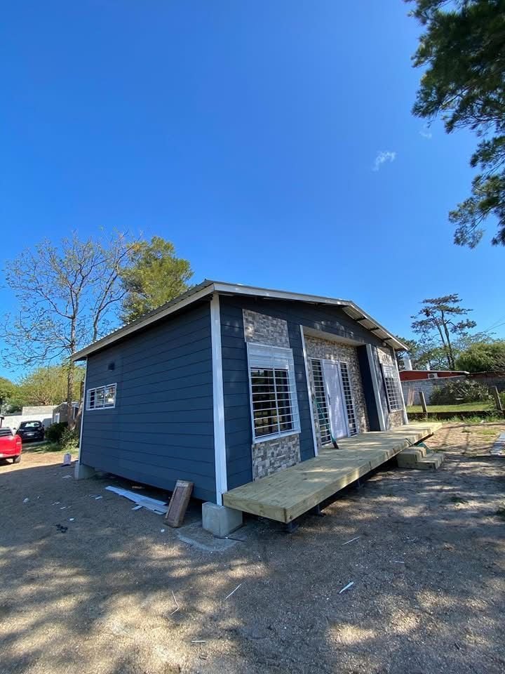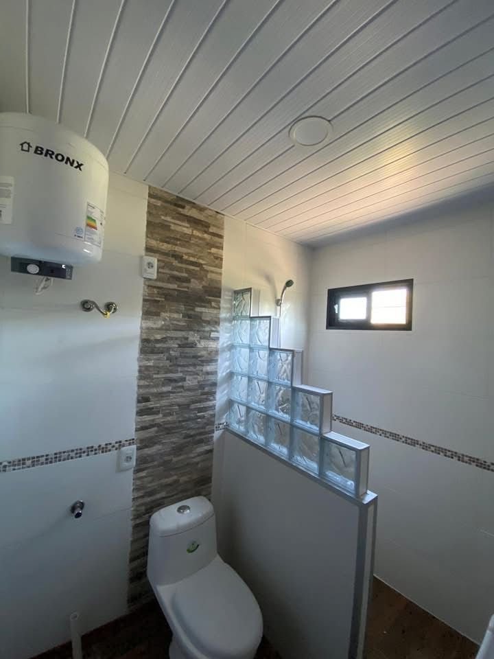 – Revesitmiento exterior en frente y fondo en siding con detalle en cerámica imitación piedra.